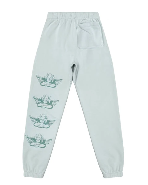 Our new heavyweight french terry fabric in baby blue. High rise sweatpants with back and side pockets, elastic waistband and cuffs.