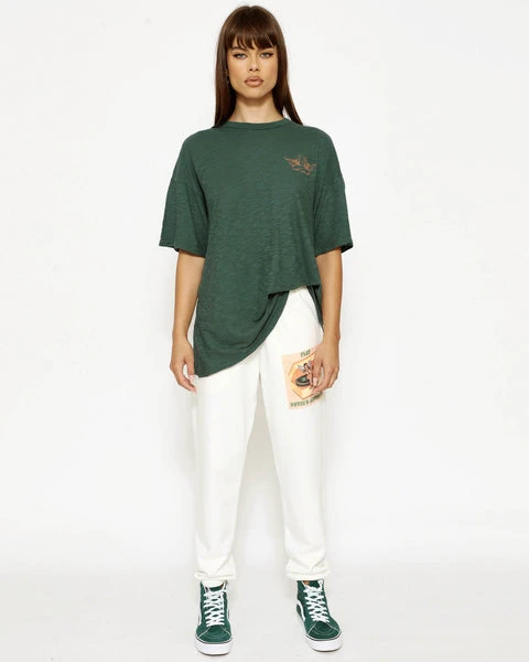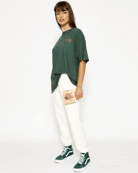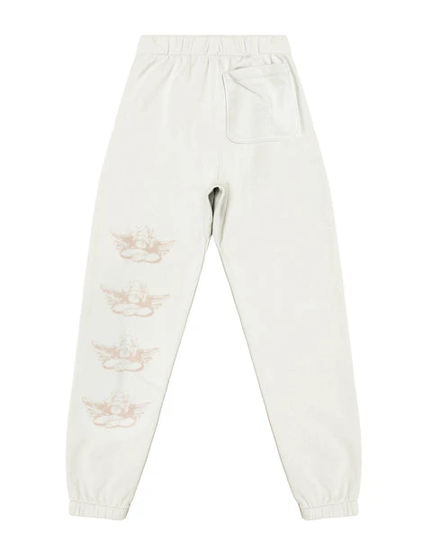 Our new heavyweight french terry fabric in cream. High rise sweatpants with back and side pockets, elastic waistband and cuffs.