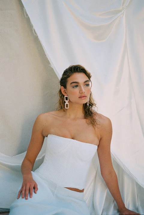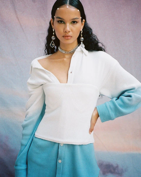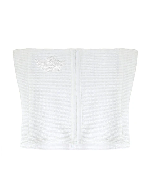 Soft thermal corset. Metal boning, seam details, hook and eye back closures.