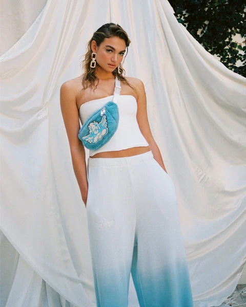 Soft thermal wide leg pants. Elastic waistband and embroidered logo. This item is hand dip-dyed and may show slight color variations.