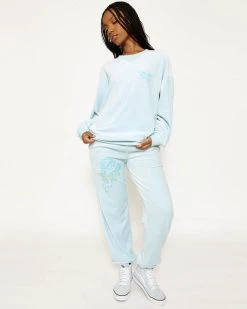 Lightweight terry fleece fabric in blue and pink dip dye. Oversized high rise sweatpants with back and side pockets, elastic waistband and cuffs. This item was hand dyed and may show slight color variations.
