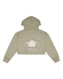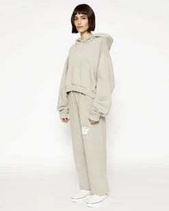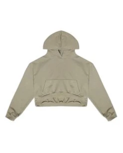 Heavyweight french terry. Oversized cropped hoodie featuring a dramatic hood, front pocket, and slightly curved front hem.