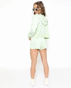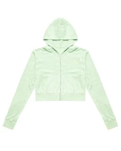 Lightweight terry cloth fabric in mint green. Zip up hoodie with cropped hem, front pockets, and Boys Lie logo patch. Washed for a vintage look and feel.